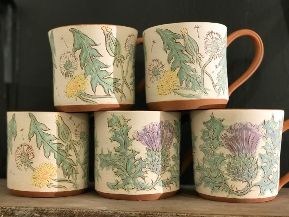 There’s a story here…I’m not entirely sure what. But I do have an endless fascination with the humble dandelion. I was reminded of it’s beginning when a friend in Germany sent me a photo of her morning coffee in one of my terracotta sgraffito mugs – the range I began my ceramics business with.