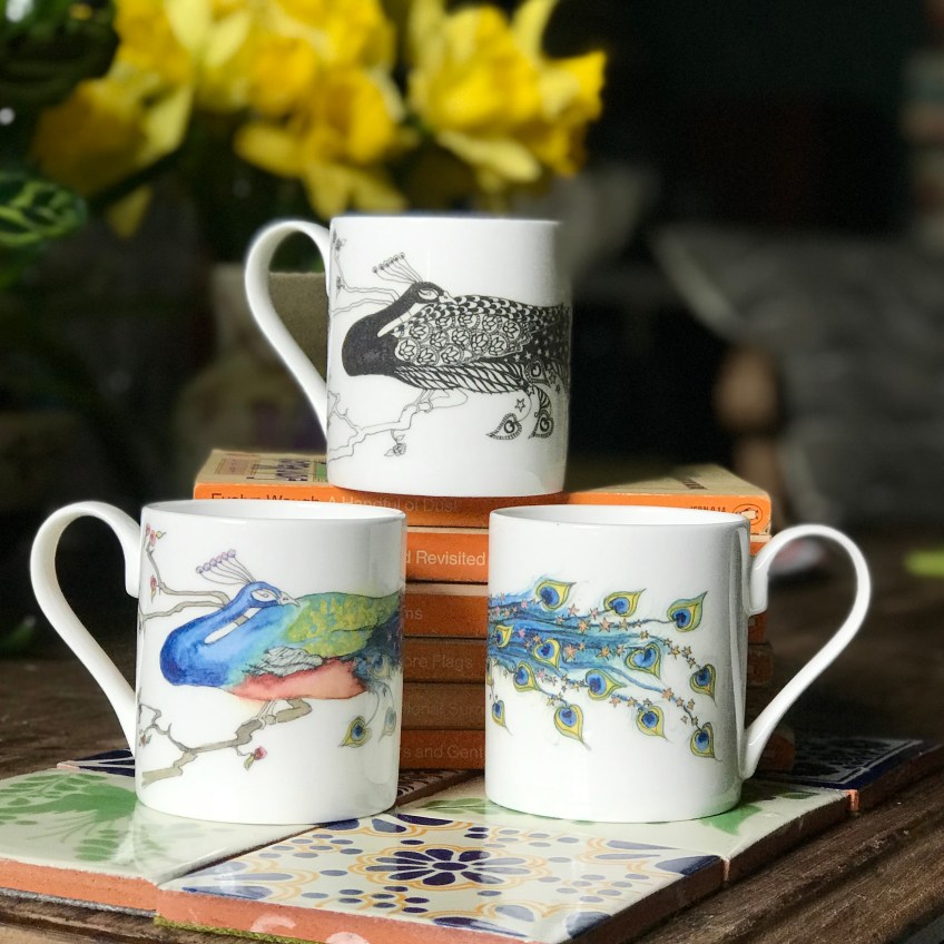 Colour and Monochrome Peacock large bone china mugs. Published June 19, 2021 at 2603 × 2603 in Colour and Monochrome Peacock large bone china mugs.