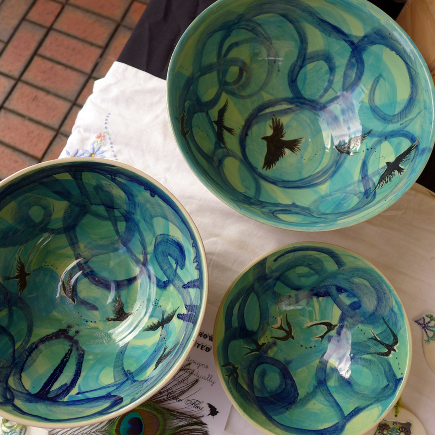 Number two some Birds in Flight sgraffito decorated stomeware bowls…