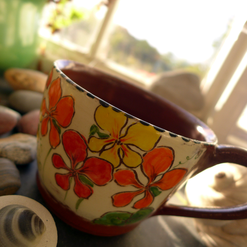 Number one is a bespoke set of nasturtium illustrated earthenware – 2 large mugs and a serving bowl…